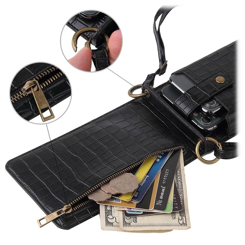 - Separates Telefonfach, Reißverschlusstasche und mehrere Kartenfächer