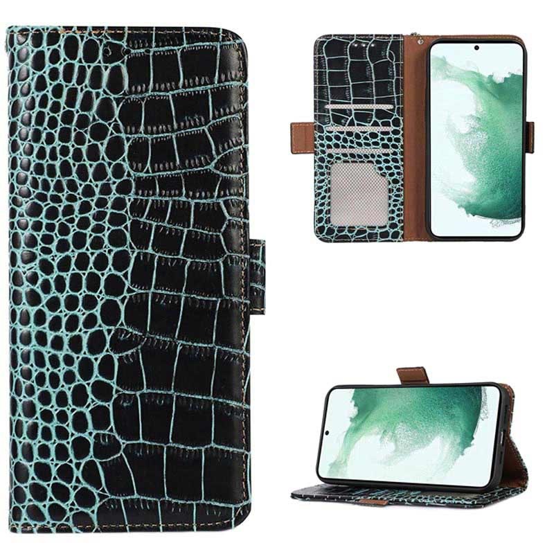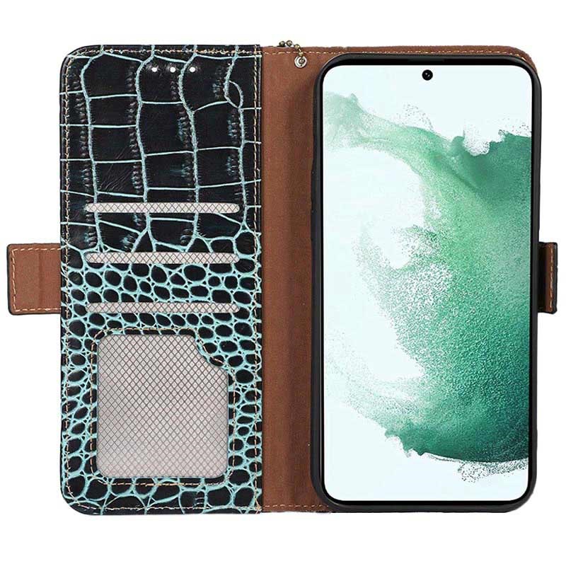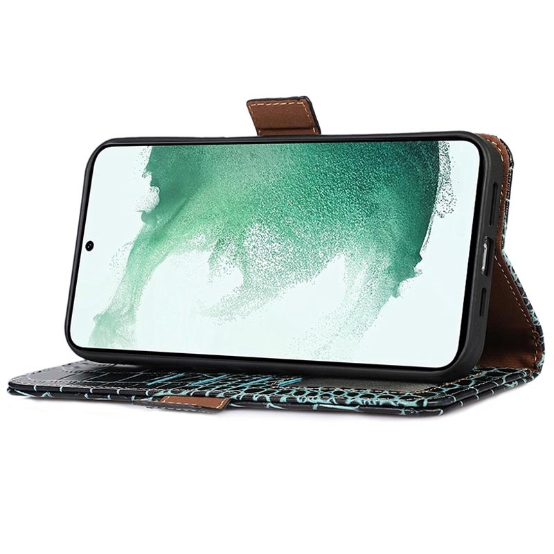 • Crocodile Serie Lederhülle mit Geldbörse mit RFID für Samsung Galaxy S21 FE 5G