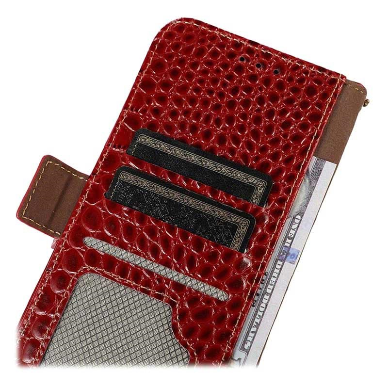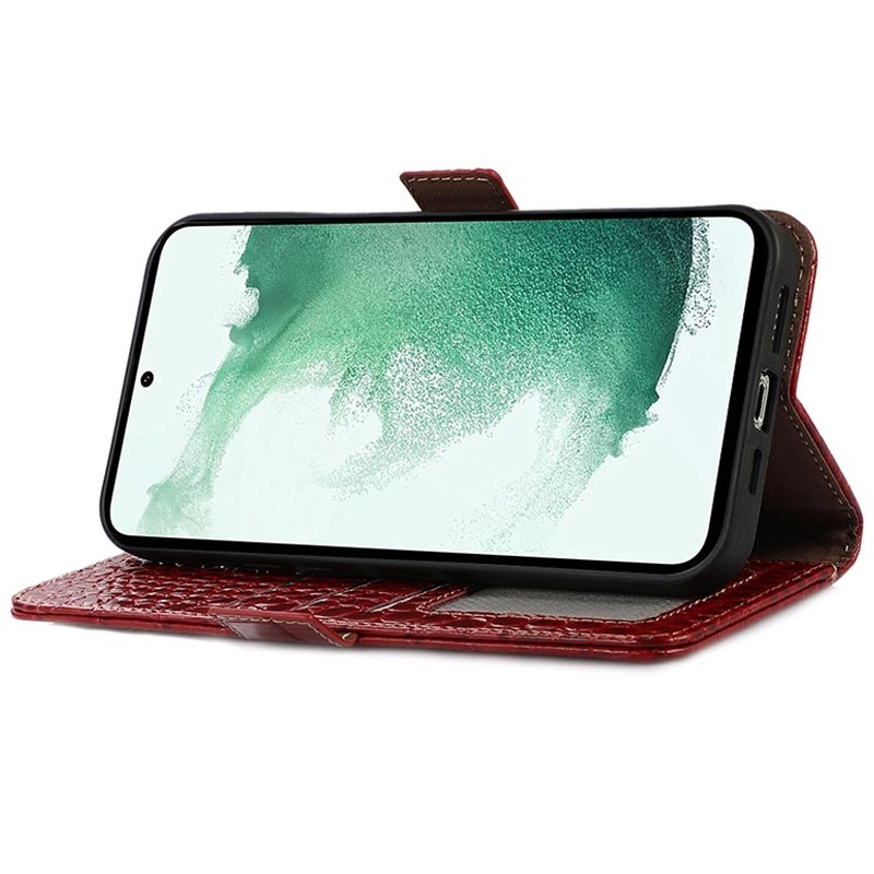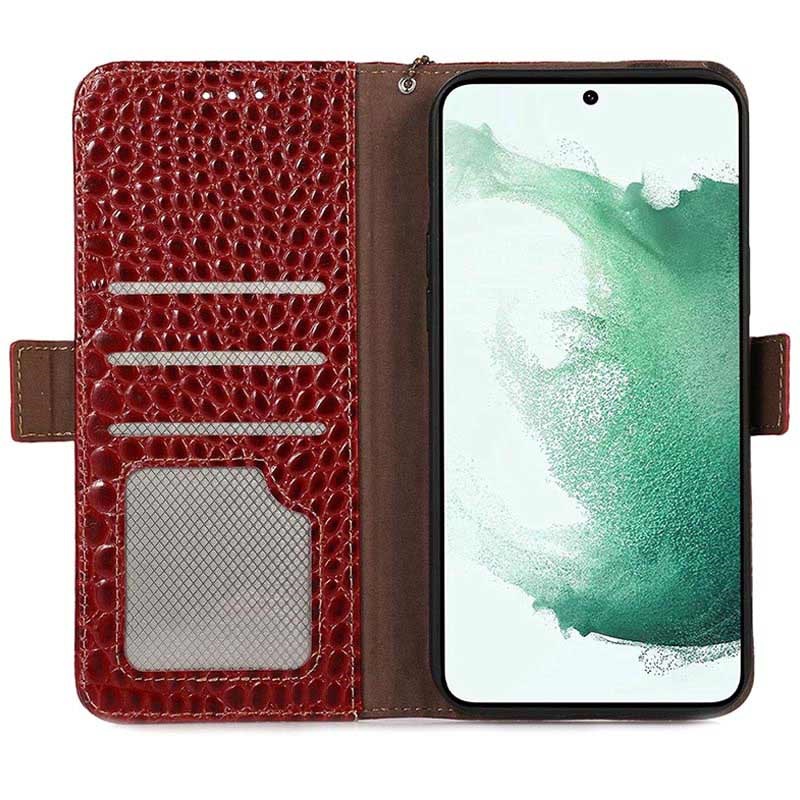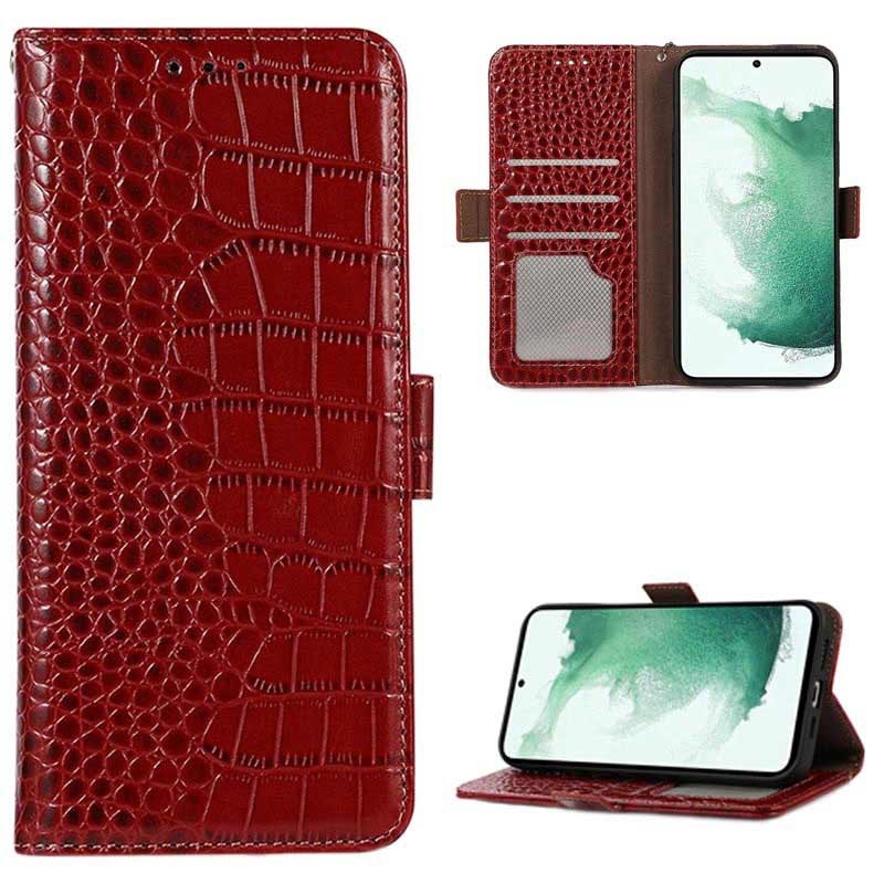• Crocodile Serie Lederhülle mit Geldbörse mit RFID für Samsung Galaxy S21 FE 5G