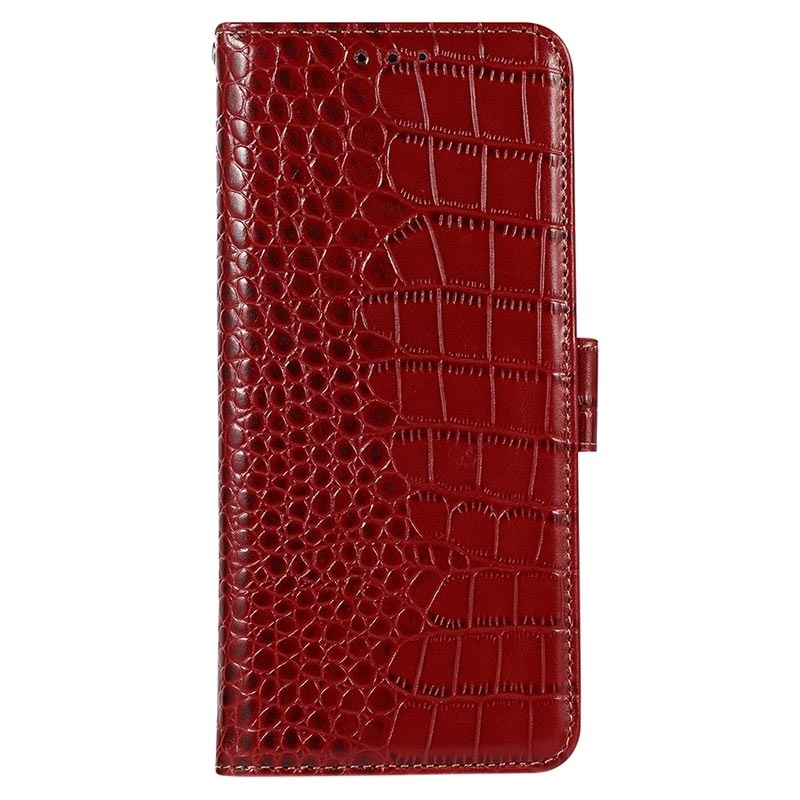 Crocodile Serie Samsung Galaxy S21 FE 5G Lederhülle mit Geldbörse mit RFID - Rot