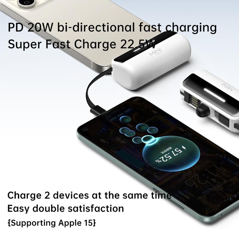 Cyke X3 Mini Lightning Power Bank mit USB-C, USB-A Kabeln - 5000mAh