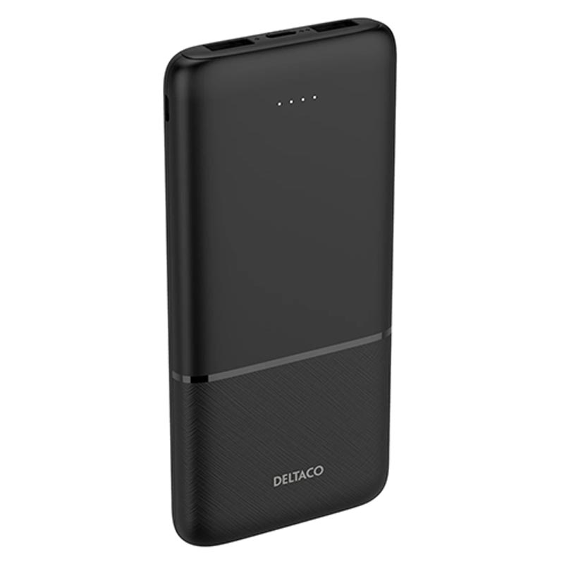 Deltaco 10000mAh Powerbank mit Schnellladefunktion - Schwarz