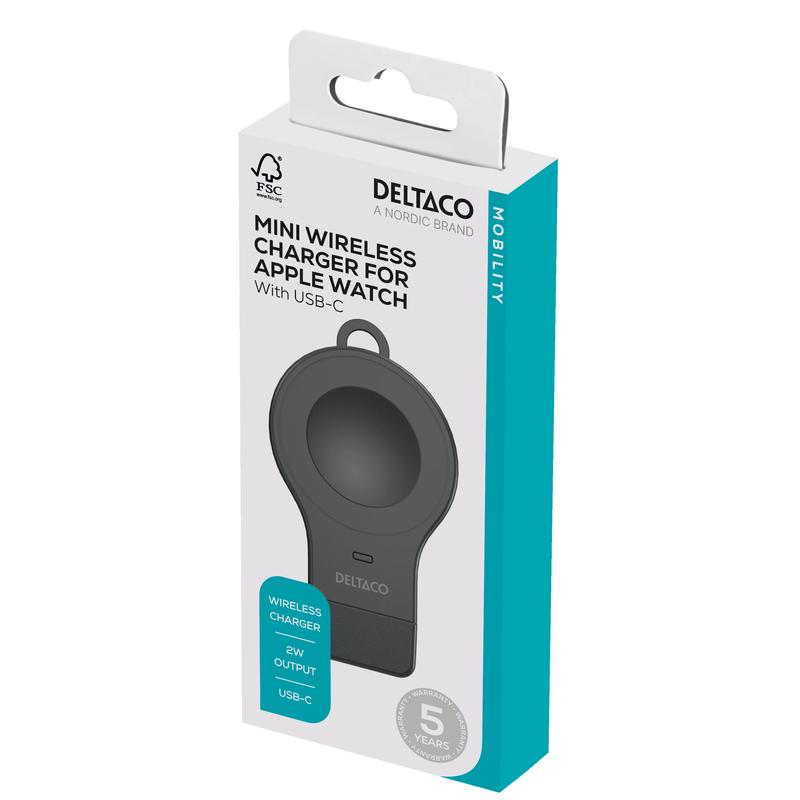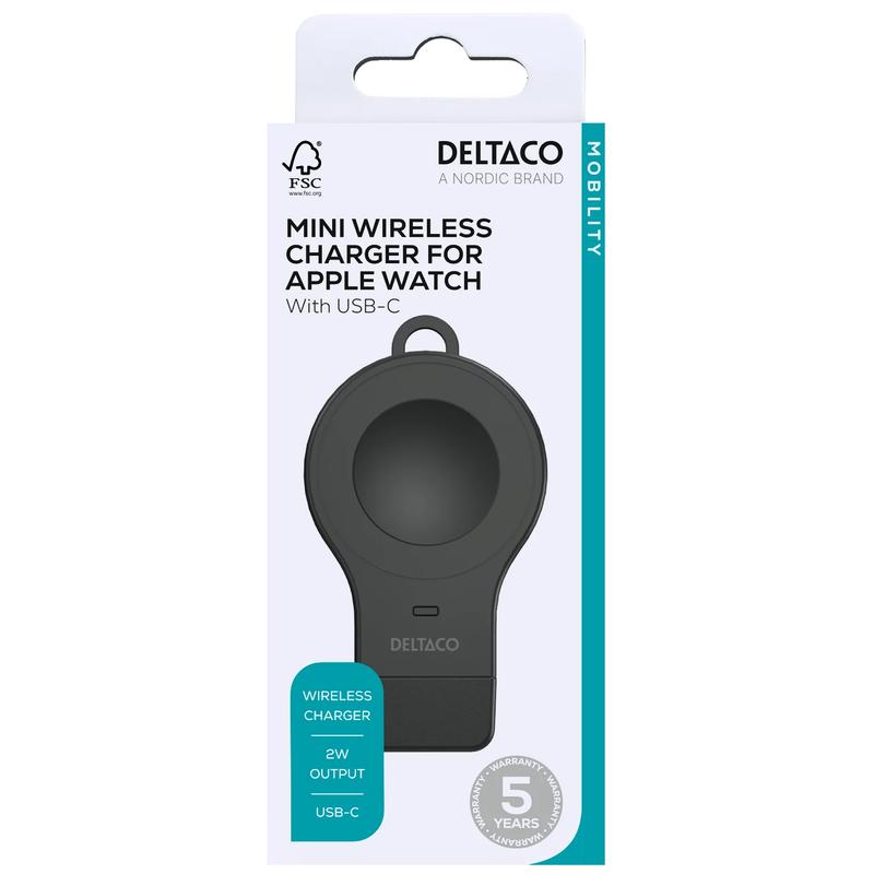 Deltaco AWC-102 Mini Wireless Ladegerät für Apple Watch - USB-C - Schwarz