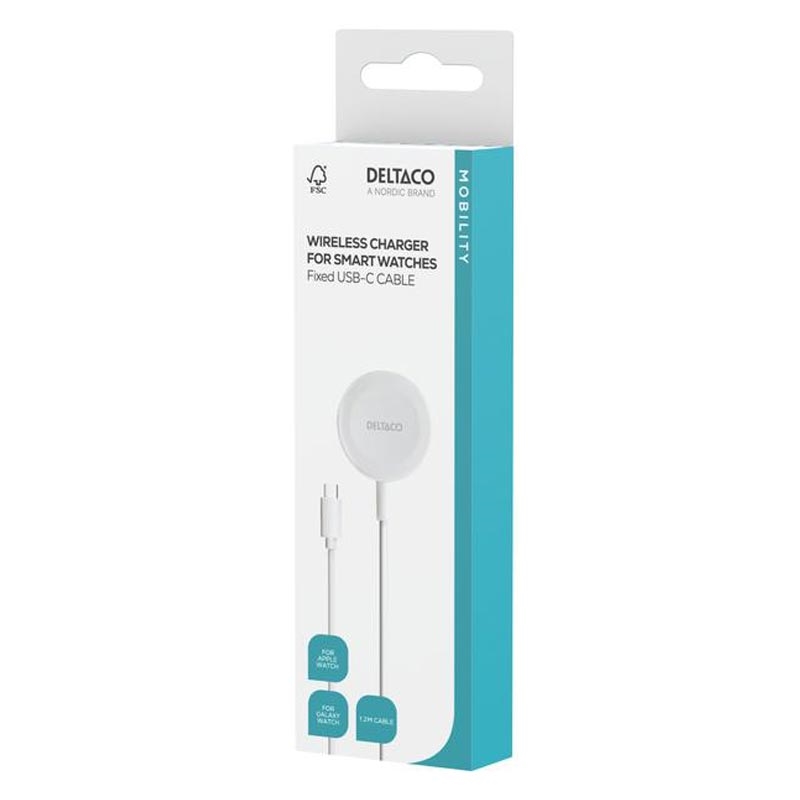Deltaco Magnetisches kabelloses Ladegerät für Apple Watch/Samsung Galaxy Watch - Weiß