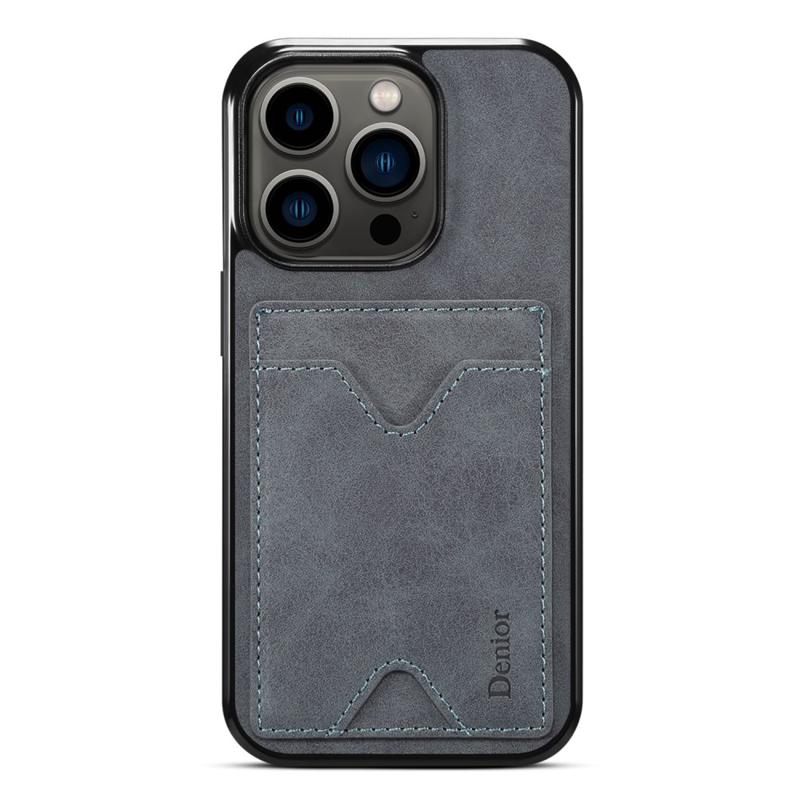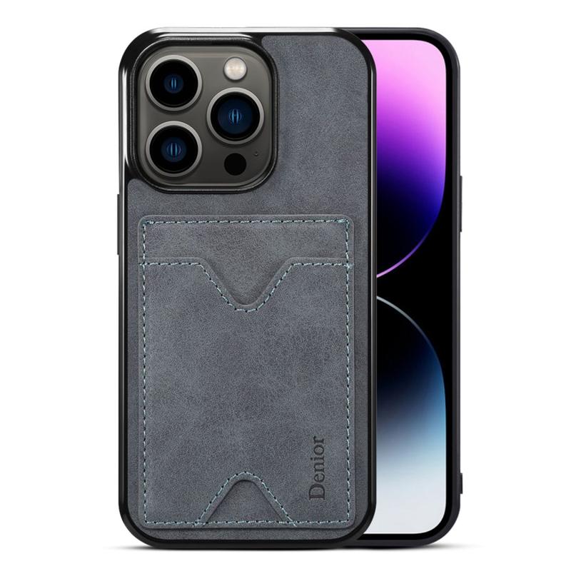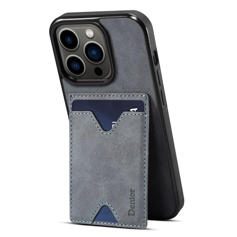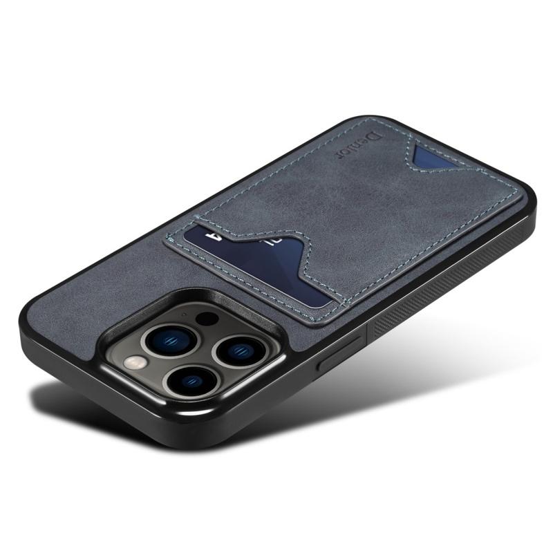 DENIOR For iPhone 14 Pro Card Holder Phone Cover Anti-scratch PU Leather Coated TPU Kickstand Case