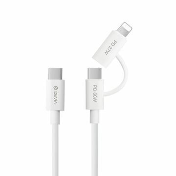 • Devia EC404 Smart 2-in-1-Schnelllade- und Datenkabel - USB-C auf USB-C PD 60 W und Lightning 27 W - 1.2m, 480 Mbit/s