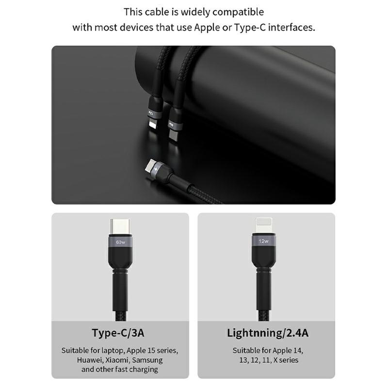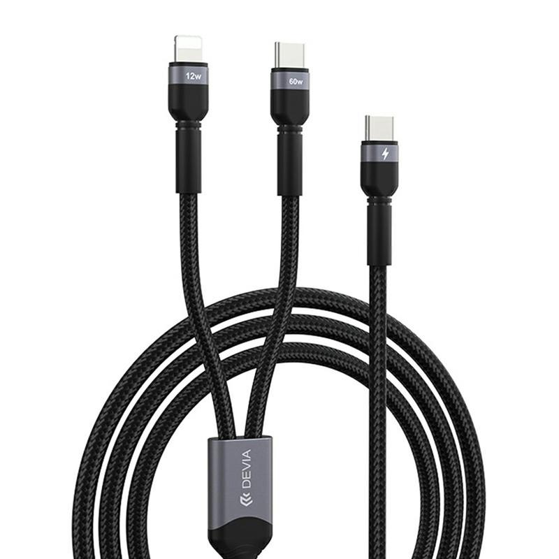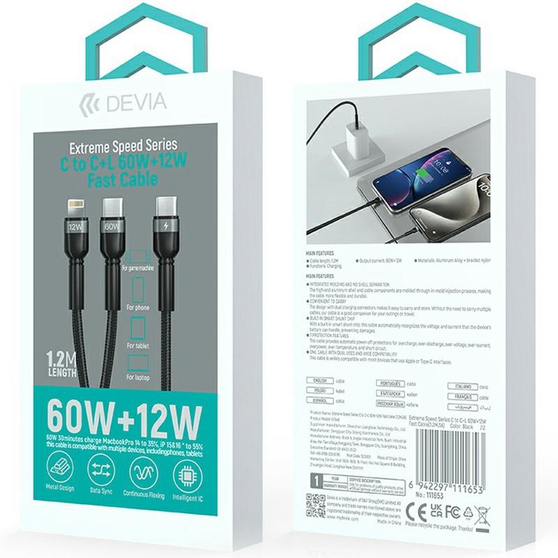 Devia EC648 Extreme Speed 2-in-1-USB-C-Kabel - USB-C auf USB-C 60 W PD und Lightning 12 W, geflochtenes Nylon, Datensynchronisation, 1.2m