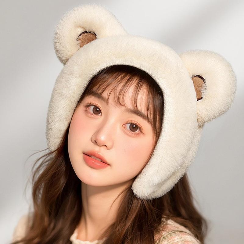 DEZ45 Niedlicher Plüsch Bär Ohr Winter Stirnband / Ohrenschützer - Beige
