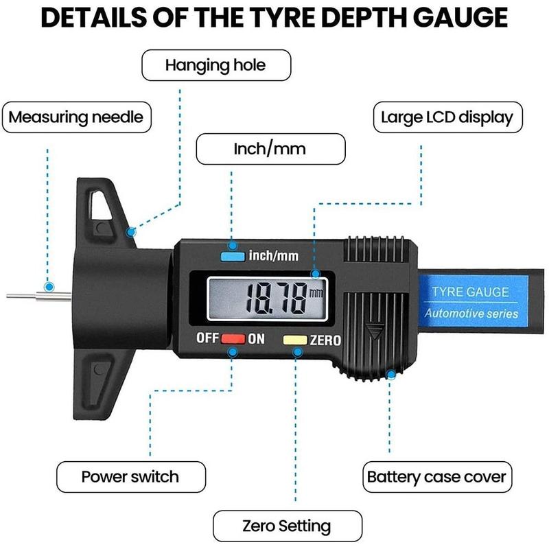 • Digitaler Reifentiefenmesser - 0-25.4mm LCD-Anzeige für genaue Verschleißerkennung