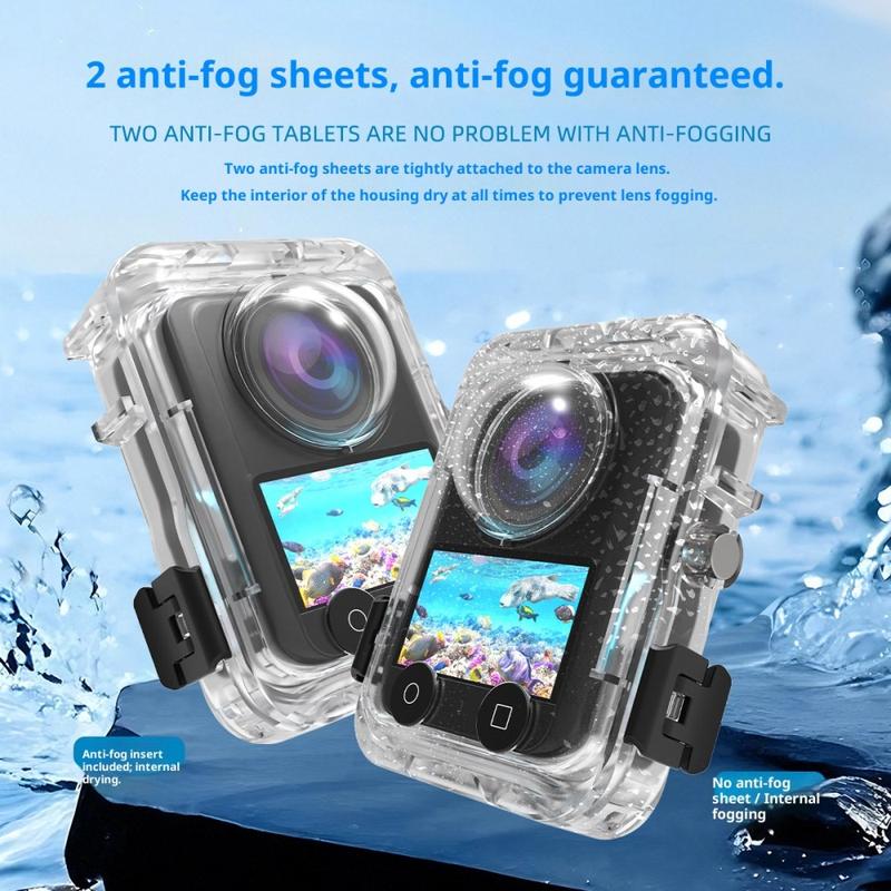 Im Lieferumfang sind zwei professionelle Anti-Beschlag-Einsätze enthalten, die die Kondensation im Inneren des Gehäuses wirksam reduzieren und so für klare, verzerrungsfreie Aufnahmen in kalten oder tiefen Gewässern sorgen.