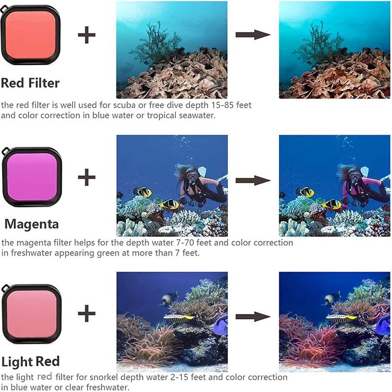 - Unterwasserfilter helfen dabei, Farben wiederherzustellen, die in der Tiefe absorbiert werden, und sorgen so für natürlich aussehende Aufnahmen