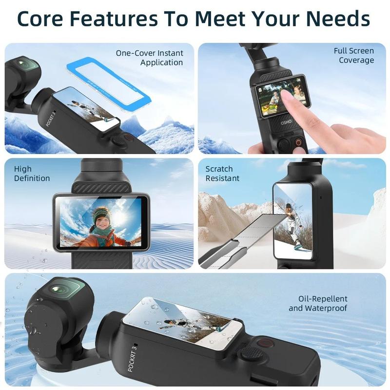 Wenn Sie nach einer einfachen und effektiven Möglichkeit suchen, das Display Ihres DJI Osmo Pocket 3 zu schützen, ist dieses Set aus gehärtetem Glas eine ausgezeichnete Wahl. Es vereint Bildschirmklarheit, reaktionsschnelle Touch-Bedienung und Kratzfestigkeit im Alltag in einem praktischen Zubehörset, das für den regelmäßigen Kamerabruch konzipiert ist.