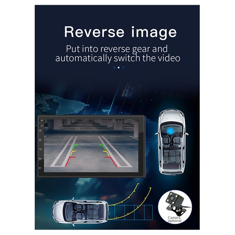 - Rückfahrkamera zeigt ein Rückwärtsbild, sie schaltet automatisch um, wenn Sie den Rückwärtsgang einlegen (Kamera nicht im Lieferumfang enthalten)