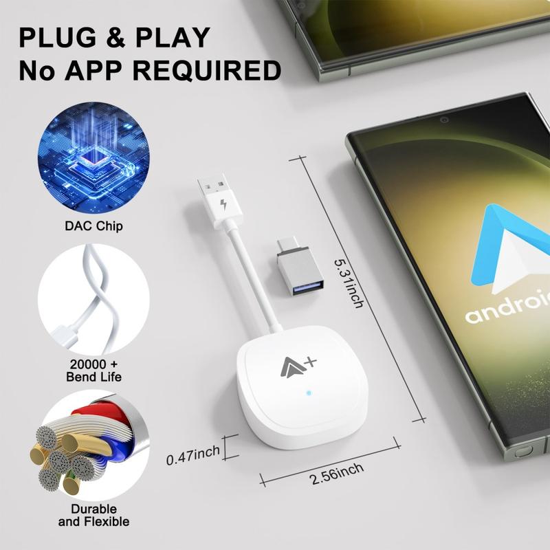- Kabelloses Android Auto: Konvertiert kabelgebundene Systeme in kabellose für zusätzlichen Komfort.