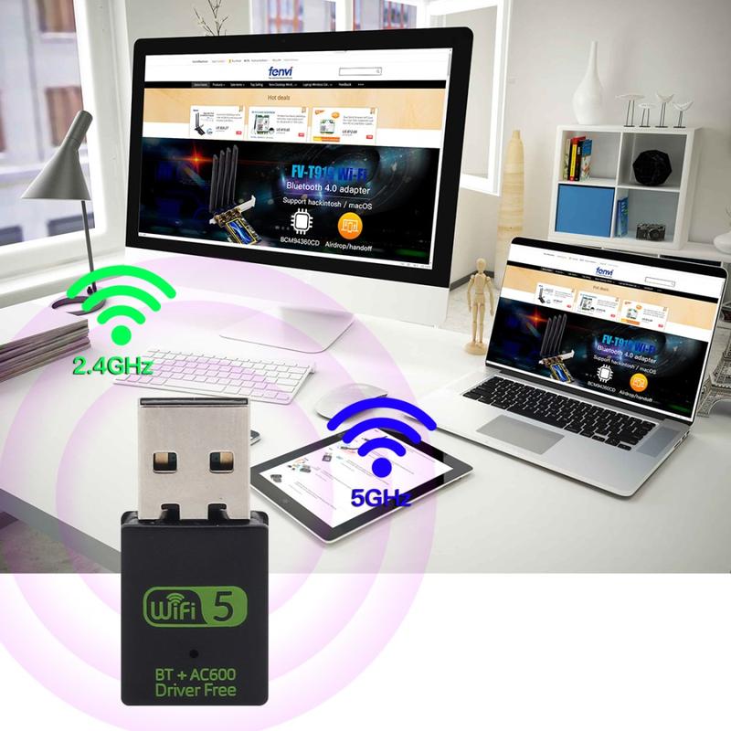 Drahtloser USB WiFi Dongle / Bluetooth Adapter für PC, Laptop - 600Mbps, Dual Band 2.4GHz/5.8GHz, Bluetooth 4.2