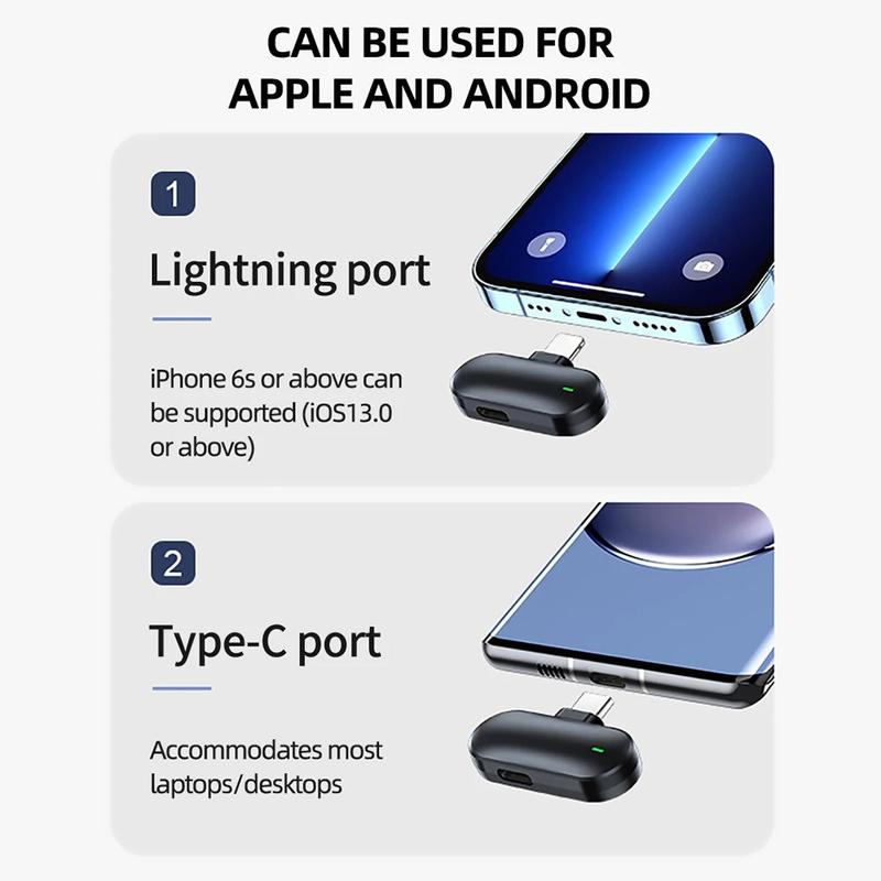 Anschließen und bezahlen. Schließen Sie einfach den Empfänger an Ihr Handy an, das drahtlose Mikrofon wird automatisch gepaart und beginnt zu arbeiten