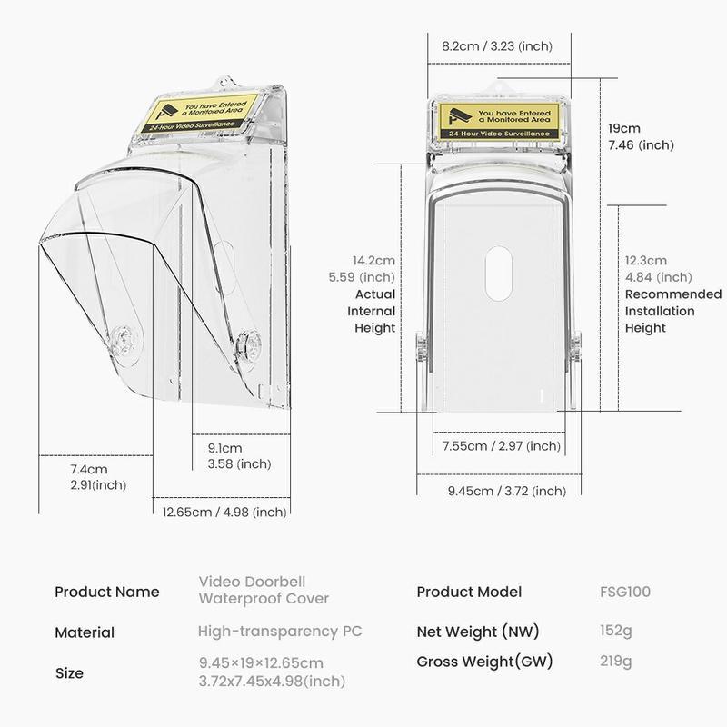 Die aus schlagfestem Polycarbonat (PC) hergestellte Abdeckung ist hitzebeständig, stoßfest und hochtransparent. Sie schützt die Türklingel, ohne die Kamera, Bewegungssensoren oder Anzeigeleuchten zu blockieren.