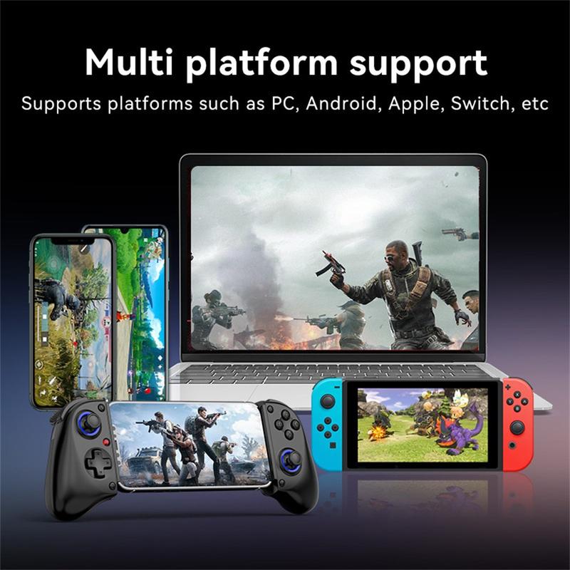 Erleben Sie nahtloses Gaming mit dem dehnbaren Bluetooth-Gamecontroller DSP-D11. Dieses kabellose Gamepad ist mit Nintendo Switch, iOS- und Android-Geräten kompatibel und bietet eine reaktionsschnelle Steuerung und ein ergonomisches Design für ausgedehnte Gaming-Sessions. Die dehnbare Konstruktion ermöglicht die Kompatibilität mit verschiedenen Handygrößen und ist somit ideal für Gamer, die viel unterwegs sind.