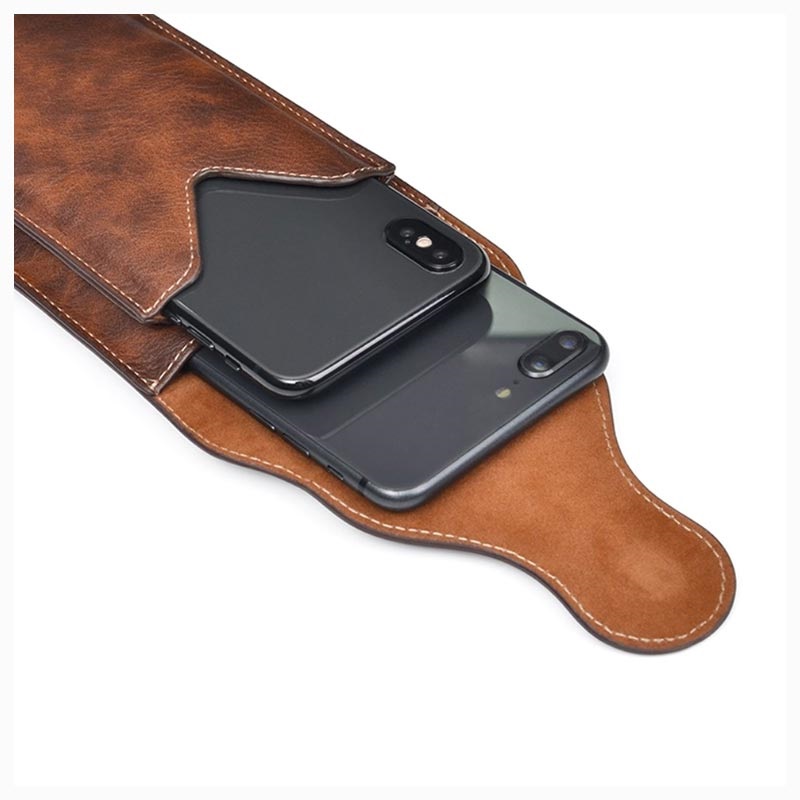Mit dieser universellen, doppellagigen Gürteltasche können Sie bis zu zwei Smartphones mitnehmen. Diese stilvolle Gürteltasche wurde entworfen, um Ihnen mehr Stil zu verleihen und ist perfekt vernäht, um Haltbarkeit zu gewährleisten. Die aus hochwertigem Polyurethan gefertigte Gürteltasche trägt Ihre Smartphones sicher und schützt sie vor Kratzern. Die Hüfttasche bietet Schutz vor täglicher Abnutzung, Stößen und Kratzern, während der Karabiner die Hüfttasche an Ihrem Gürtel befestigt.