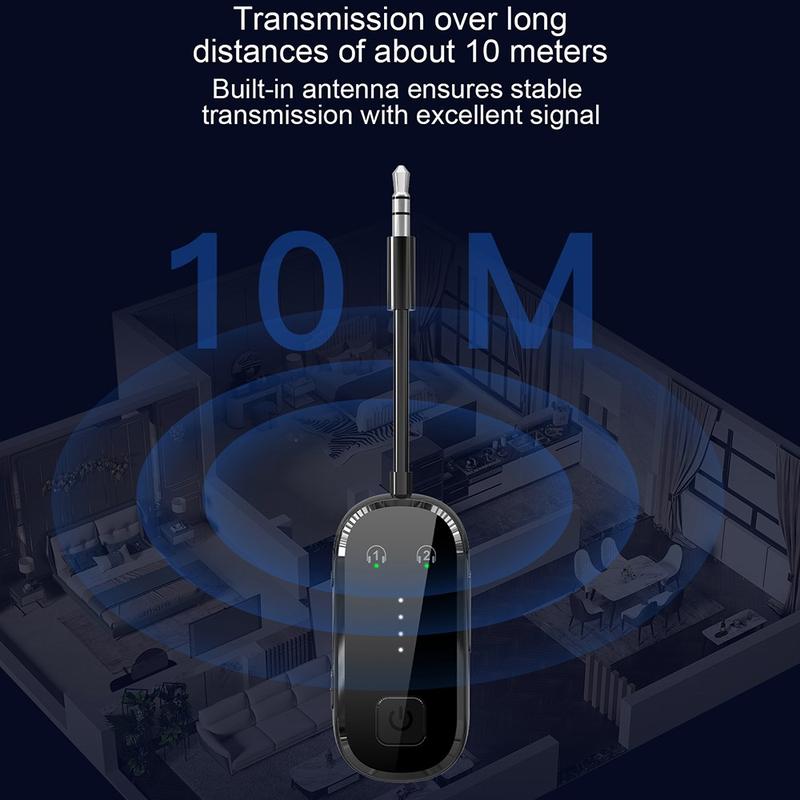 Dank Bluetooth 5.4-Technologie bietet das Gerät eine schnellere Reaktion, stabile Konnektivität und effiziente drahtlose Leistung. Im Sendermodus kann er Audio von kabelgebundenen Quellen an Bluetooth-Kopfhörer oder -Lautsprecher senden. Im Empfängermodus kann er drahtloses Audio von Ihrem Smartphone, Tablet oder einem anderen Bluetooth-kompatiblen Gerät empfangen und über den 3,5-mm-Anschluss an kabelgebundene Audiogeräte ausgeben. Die Dual-Link-Unterstützung sorgt für noch mehr Komfort, da die Verbindung zu zwei Bluetooth-Geräten gleichzeitig möglich ist, was das gemeinsame Hören oder das Umschalten zwischen mehreren Geräten erleichtert.