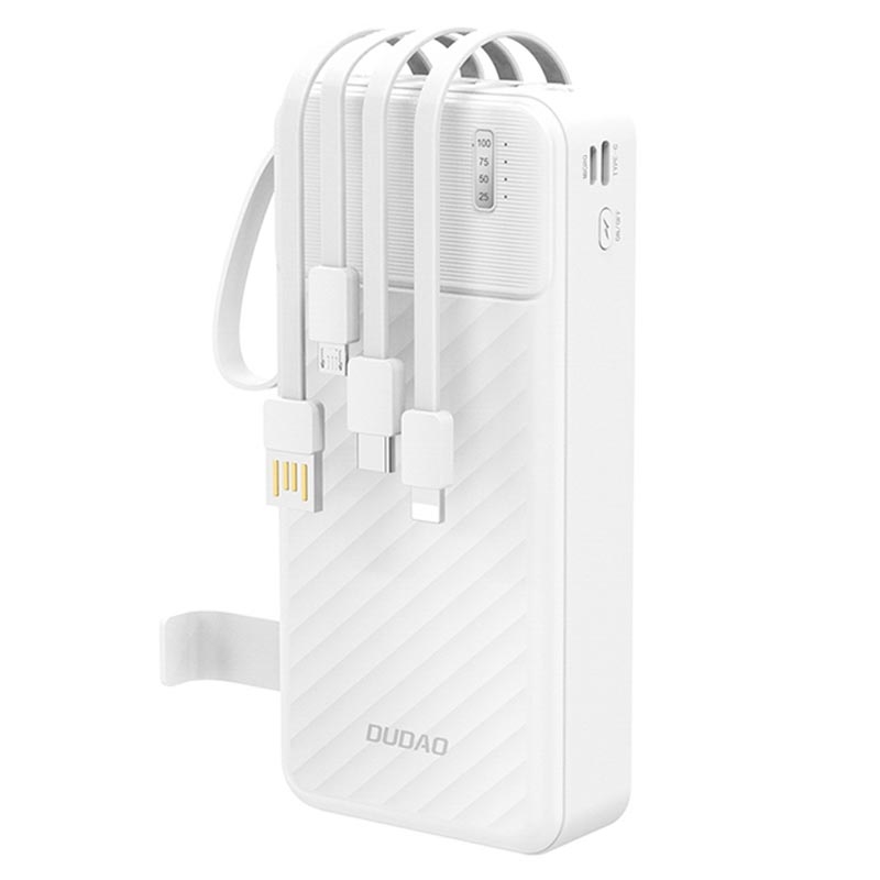 Dudao K11 Pro 20000mAh Power Bank - Schlankes tragbares Ladegerät mit 4 integrierten Kabeln (USB-A, USB-C, Lightning, micro USB), 10W Leistung