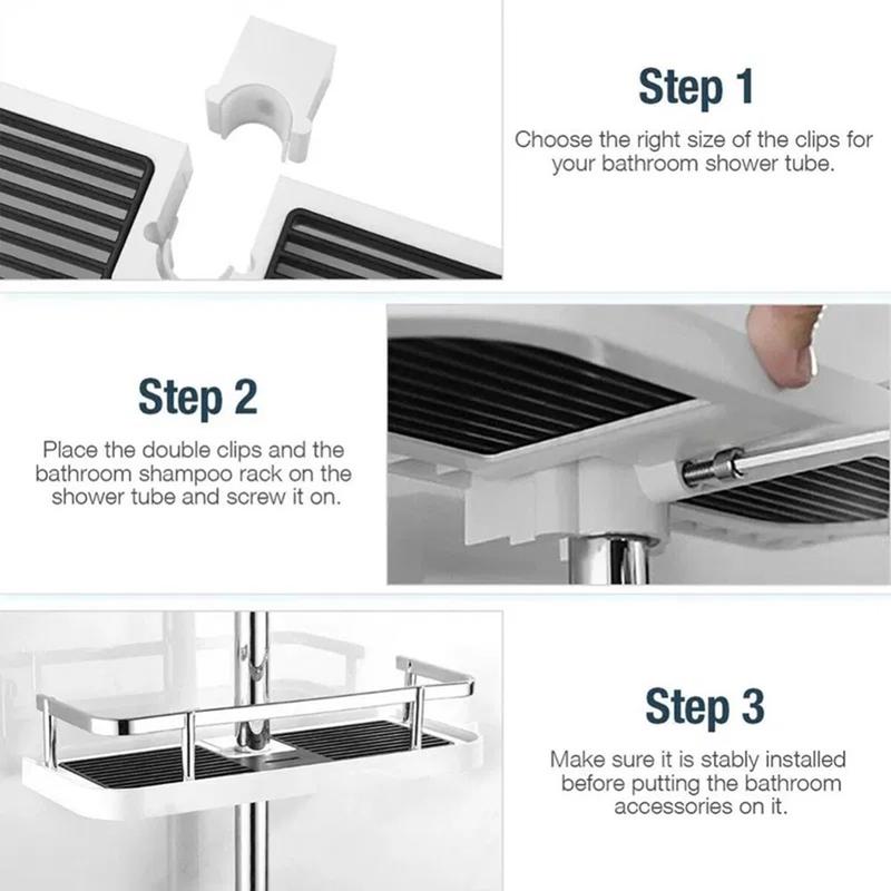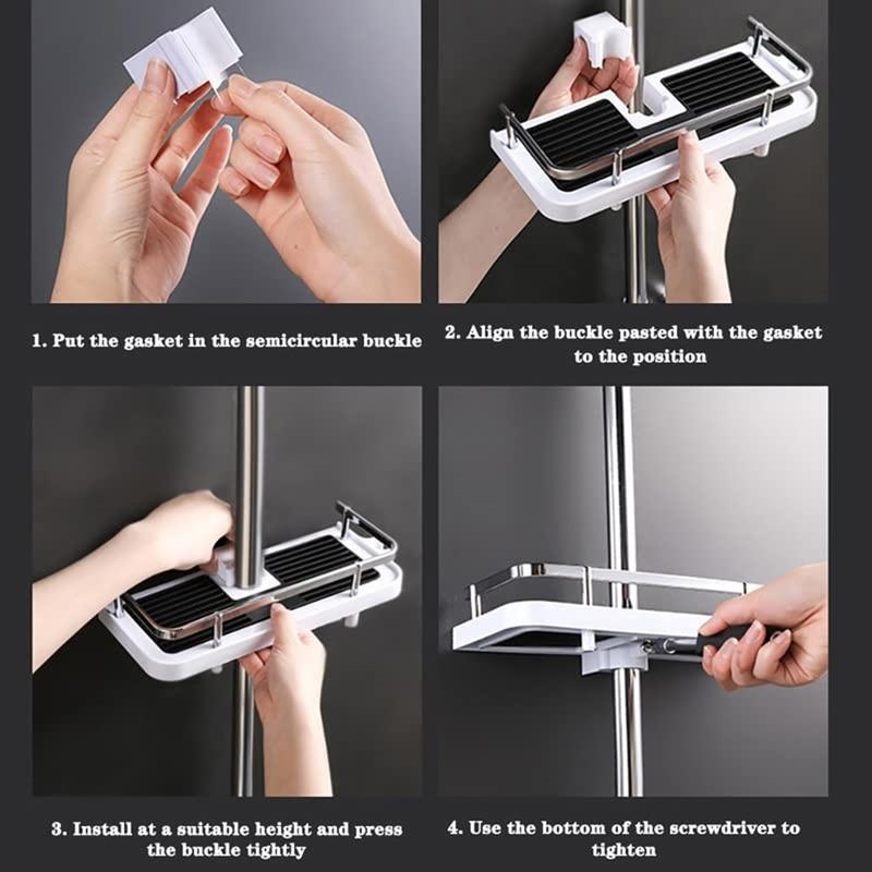 - Geräumiges Shampoo-Tablett: Bietet reichlich Platz für Shampoos, Pflegespülungen, Seifen und andere Duschutensilien und hält sie in Reichweite.