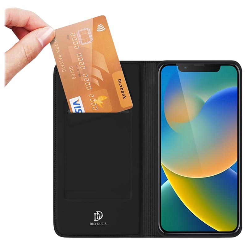 - iPhone 14 Dux Ducis Flip Case hat einen Kartensteckplatz