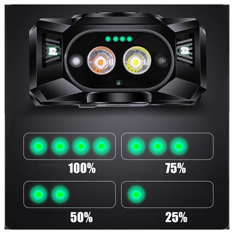 Der leistungsstarke und wiederaufladbare Lithium-Akku bietet eine lange Betriebsdauer und kann auch als Powerbank genutzt werden. Zwei helle XPG-LED-Leuchten, weißes, gelbes und rotes Warnlicht, ermöglichen sechs verschiedene Nutzungsmodi. Das solide und kompakte Gehäuse ist wasserfest und kann Stürze überstehen. Stellen Sie den Gurt und den Winkel der Halterung ein, wählen Sie den induktiven oder den klassischen Arbeitsmodus, und schon sind Sie bereit für nächtliche Action!