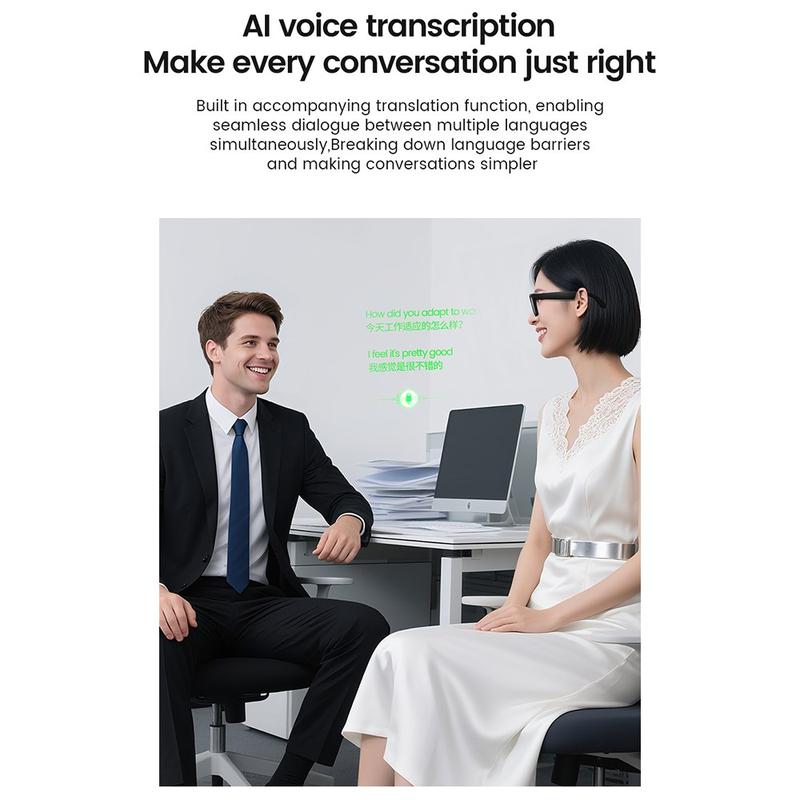 Die E02 ist mehr als nur eine intelligente Brille - sie ist Übersetzungsgerät, HD-Kamera, kabelloser Kopfhörer und KI-Assistent in einem. Ob auf Reisen im Ausland, beim Dokumentieren von Abenteuern oder bei geschäftlichen Anrufen, sie bietet einen nahtlosen Weg, um in Verbindung zu bleiben, informiert und produktiv zu sein.