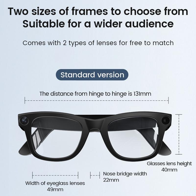 • E02 Intelligente AI-Brille - Dual-Lens Kamera Brille mit AI Übersetzung, Anti-Shake und 1080P Video
