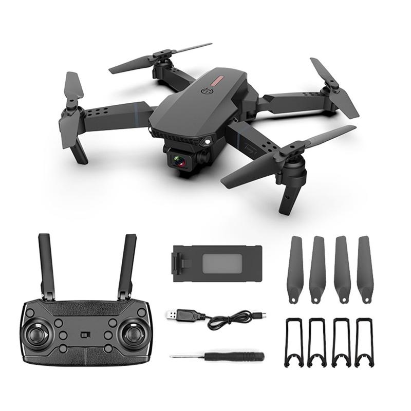 E88 Klappbare Drohne Luftaufnahmen HD Quadrocopter Höhenhaltung RC-Flugzeug mit 4K Dual-Kameras - Schwarz