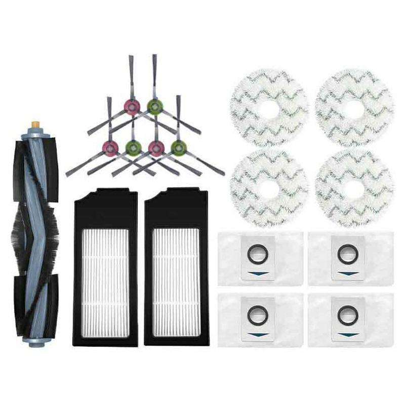 - Umfassender 17-teiliger Satz: Enthält alle wichtigen Ersatzteile - Hauptbürste, Seitenbürsten, Filter, Staubbeutel und Mopptücher.