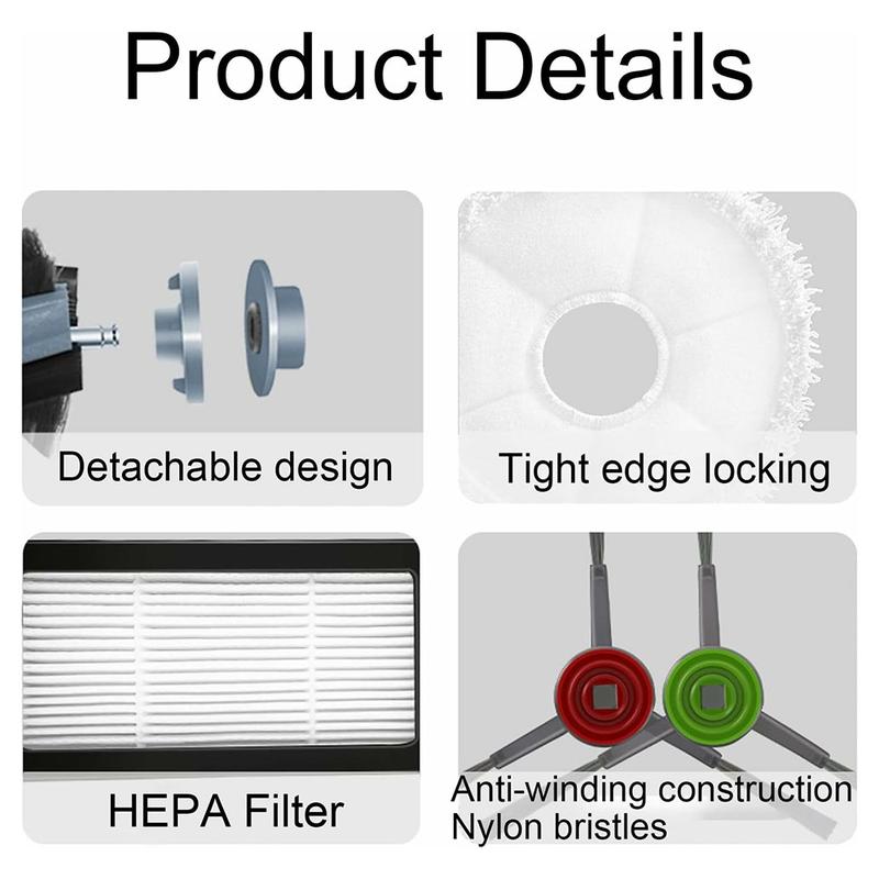 Hocheffiziente Filter wie die in diesem Kit können Partikel bis zu einer Größe von 0,3 Mikrometern auffangen, was der Größe entspricht, die in der medizinischen Filtration verwendet wird. Ein regelmäßiger Austausch von Bürsten, Filtern und Wischtüchern alle 2 bis 3 Monate trägt dazu bei, die Reinigungsleistung zu erhalten, die Lebensdauer des Roboters zu verlängern und die allgemeine Hygiene in Ihrer Wohnung zu verbessern.