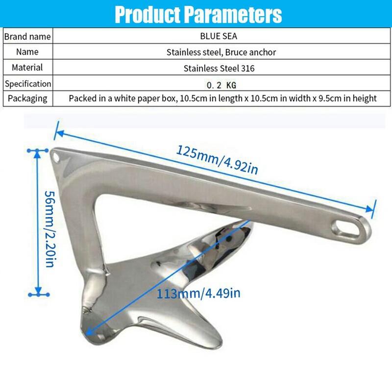 316 Edelstahl Bruce Anker 0,2 kg mit 5m Seil - Kompakter Anker für Kajak, Schlauchboot & kleine Wasserfahrzeuge (inklusive Karabinerhaken)