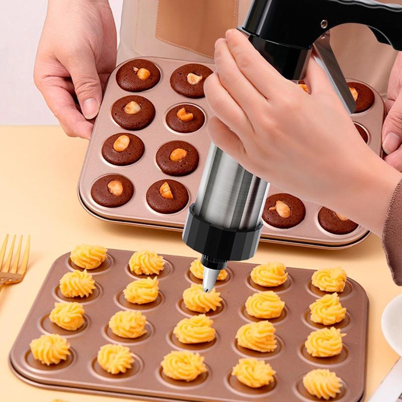 - Komplettes Backset mit 1 Ausstechpistole, 13 Ausstechformen und 8 Spritzdüsen