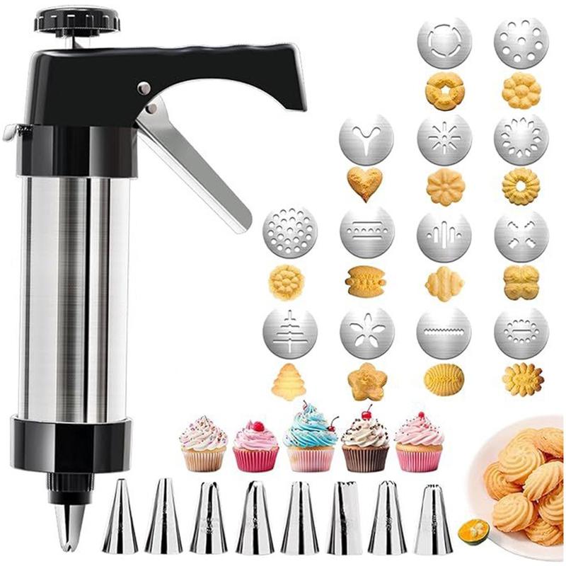Dieses Set aus rostfreiem Stahl ist ein praktisches und kreatives Backwerkzeug, das Ihnen hilft, Kekse zu formen und Desserts mit Präzision und Leichtigkeit zu dekorieren. Mit den verschiedenen mitgelieferten Scheiben und Spritzdüsen können Sie mit verschiedenen Mustern und Dekorationsarten für Kekse, Kuchen und Gebäck experimentieren. Langlebig, benutzerfreundlich und einfach zu reinigen, ist es eine zuverlässige Ergänzung für die Küche eines jeden Bäckers.