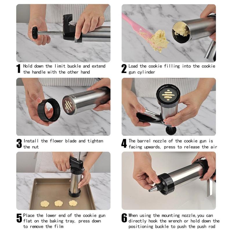 Edelstahl-Kekspressen-Backset - 8 Düsen und 13 Scheiben, BPA-frei