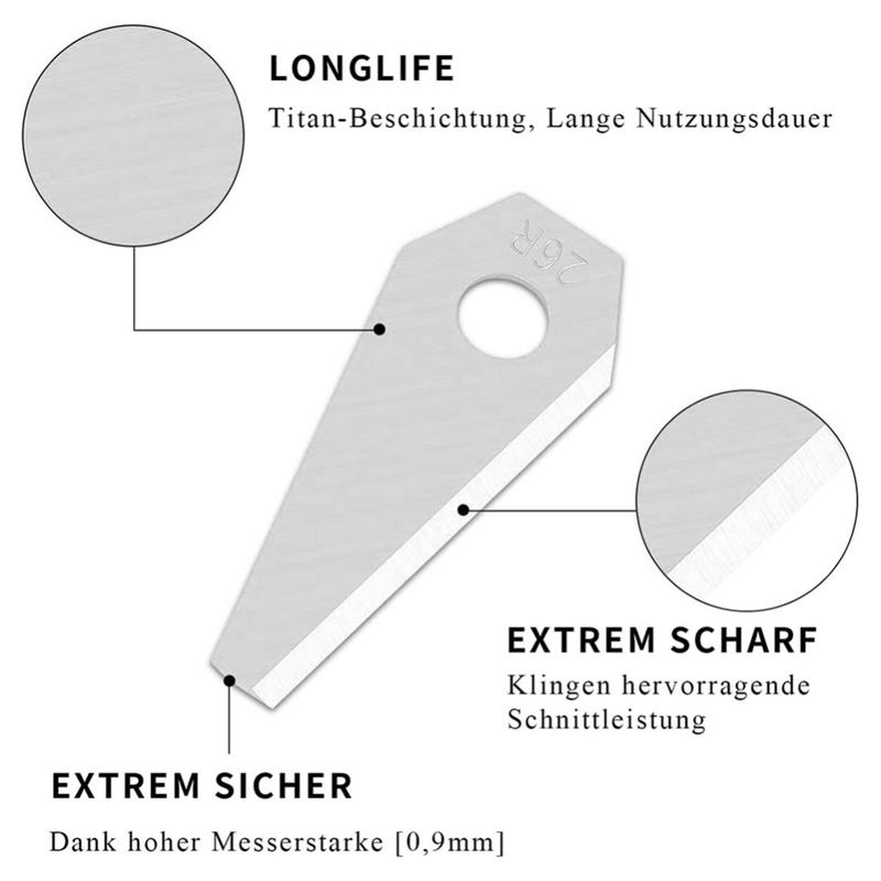 Sicher und zuverlässig: Mit ihrem präzisen Schnittdesign gewährleisten diese Ersatz-Rasenmähermesser einen sicheren und zuverlässigen Betrieb und verringern das Risiko von Unfällen oder Schäden an Ihrem Rasenroboter