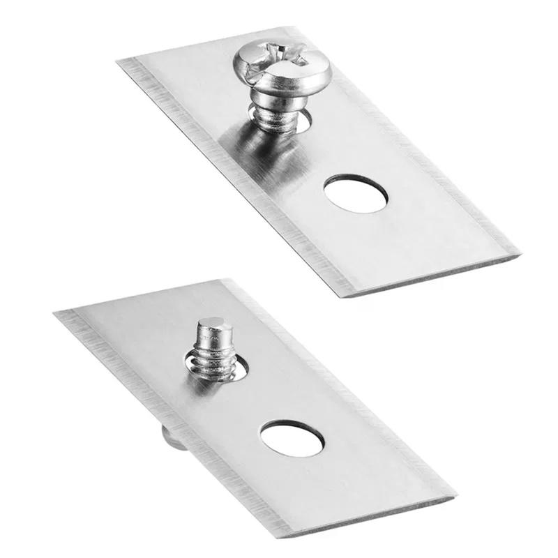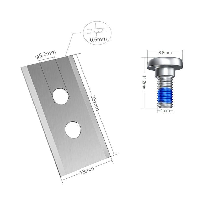 Mit präzisen Abmessungen von 35 x 18 x 0,75 mm und einer Befestigung mit zwei Löchern sorgen die Messer für einen sicheren Sitz und einen stabilen Betrieb auf kompatiblen Mährobotern. Das Set enthält außerdem passende Schrauben mit blauem Schraubensicherungsmittel, um ein Lösen während des Gebrauchs zu verhindern, was die Wartung einfacher und zuverlässiger macht.