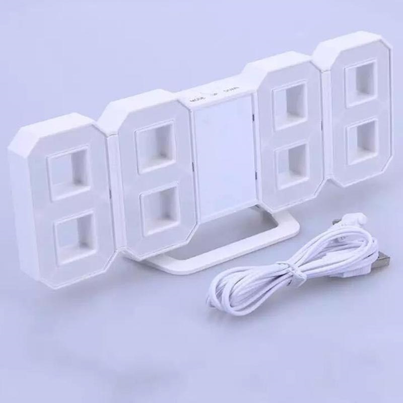 Schöne Dekoration digitale 3D LED elektrische Uhr für Ihr Haus, Büro, Wand, Tisch. Eine extrem leise Uhr wird ein großartiger Partner neben Ihnen sein, was auch immer Sie arbeiten oder wann immer Sie schlafen. Die Uhr zeigt die Zeit in einem weißen Farbton mit weißen Rahmen, die sicherlich Ihre Augen erfreuen wird, sowohl Tag als auch Nacht.