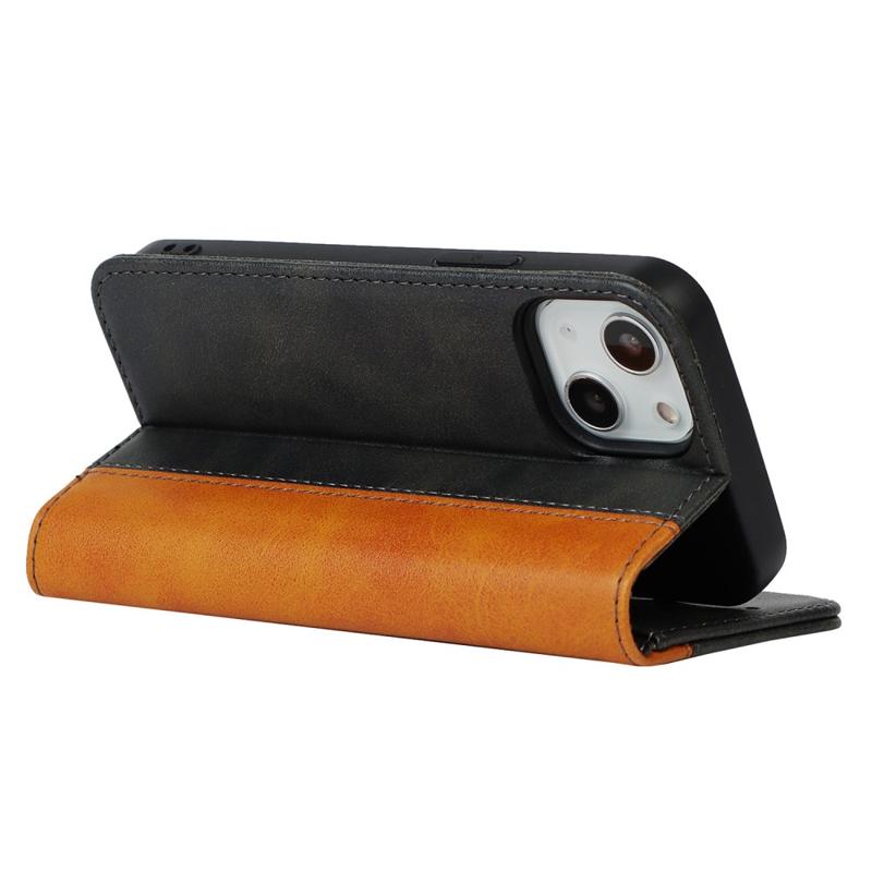 • For iPhone 14 Bi-color Splicing Magnetic Auto-absorbed Calf Texture PU Leather Phone Case Drop-proof Wallet Stand Cover - Characterized by calf textured surface PU leather with TPU material, fine quality and chic outlook - Soft TPU inner can be freely twisted and not easy to deform - Bi-color splicing design, stylish and eye-catching - Designed with card slots and cash compartment for cash and cards storage  - Can be converted into a supporting stand with adjustable angle - Higher lip and edges can protect the rear camera from scratches - Super magnet closure for closing the case tightly - Hassle-free on-off installation/removal
