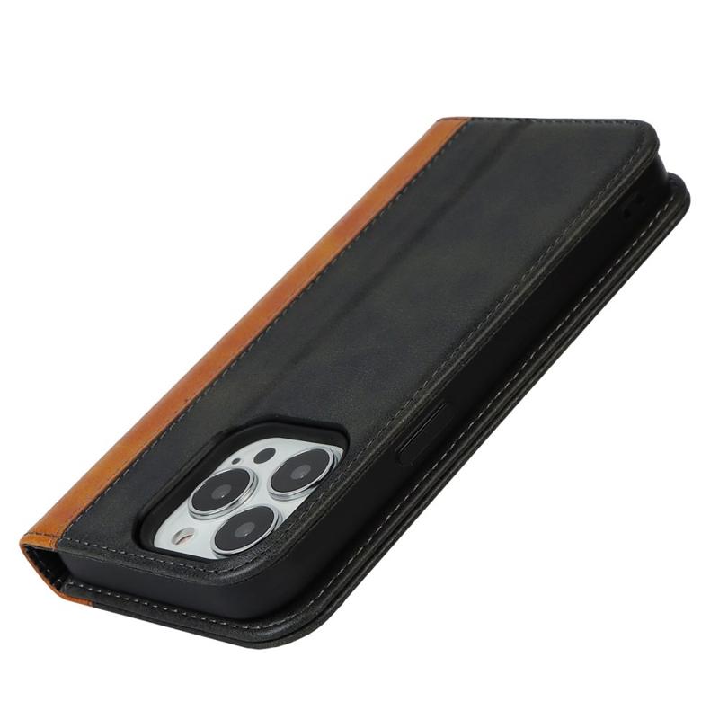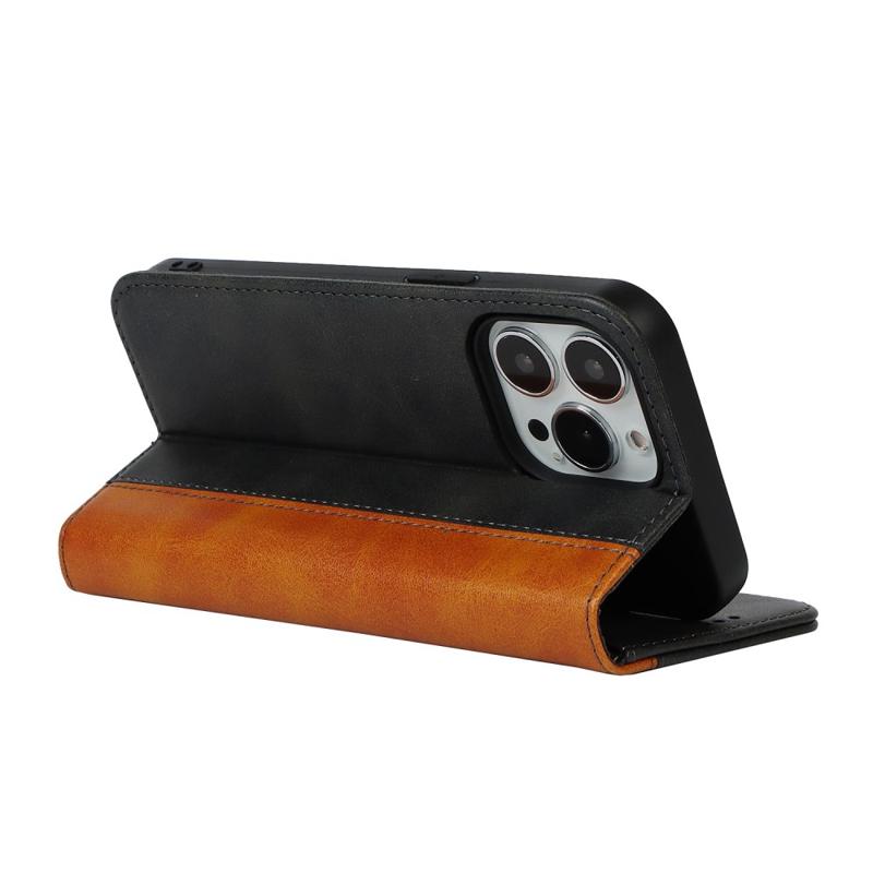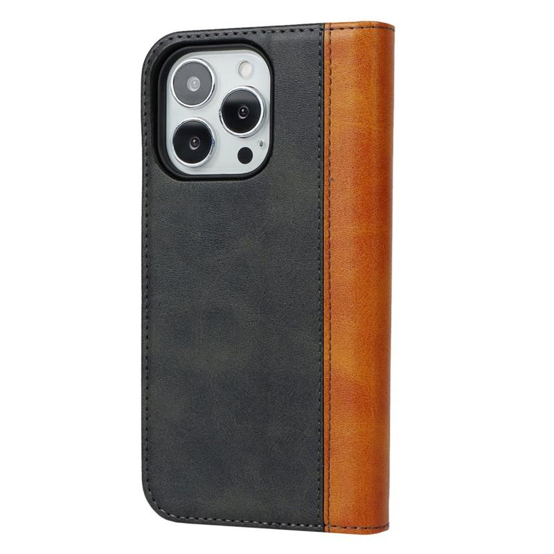 • For iPhone 14 Pro Max Calf Texture PU Leather Shockproof Wallet Case Bi-color Splicing Magnetic Auto-absorbed Foldable Stand Cover - Characterized by calf textured surface PU leather with TPU material, fine quality and chic outlook - Soft TPU inner can be freely twisted and not easy to deform - Bi-color splicing design, stylish and eye-catching - Designed with card slots and cash compartment for cash and cards storage  - Can be converted into a supporting stand with adjustable angle - Higher lip and edges can protect the rear camera from scratches - Super magnet closure for closing the case tightly - Hassle-free on-off installation/removal