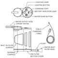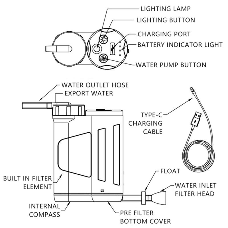 Das Gerät ist mit einer LED-Lichtfunktion ausgestattet und dient als zuverlässige Beleuchtungsquelle mit hoher Helligkeit, was es ideal für den Einsatz bei nächtlichen Aktivitäten oder in Notsituationen macht. Der eingebaute 2400-mAh-Akku sorgt für eine lang anhaltende Leistung, und das mitgelieferte Ladekabel macht es einfach, den Wasserfilter voll aufgeladen zu halten.