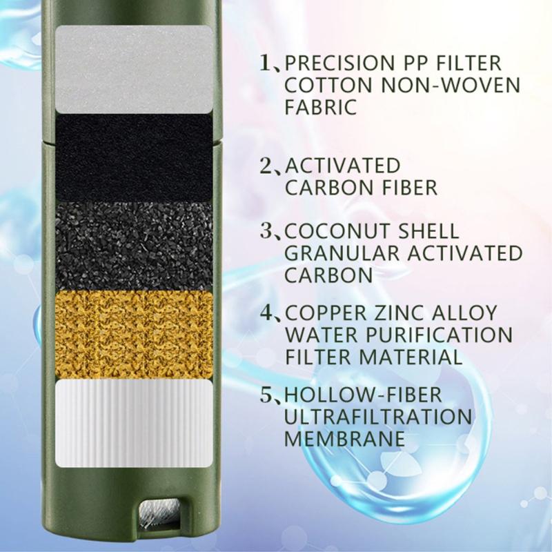 Mit einer Filtergenauigkeit von 0,01 Mikron und einem Gesamtwasserreinigungsvolumen von über 3000 Litern ist dieser Wasserfilter in der Lage, sauberes und sicheres Trinkwasser aus Oberflächengewässern der Kategorien 1-3 ohne chemische Verunreinigung zu liefern. Das Produktmaterial umfasst ABS-Kunststoff, Silikon, Ultrafiltrationsmembran, Kohlefaser, Kupfer-Zink-Legierung Wasserreinigung Material, Kokosnuss Schale körnige Aktivkohle, PP-Filter und Edelstahl-Filter, die Gewährleistung zuverlässiger und effektiver Wasserreinigung.