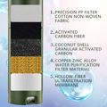 - Produkt-Material: ABS-Kunststoff + Silikon + Ultrafiltrationsmembran + Kohlefaser + Wasserreinigungsmaterial aus Kupfer-Zink-Legierung + körnige Aktivkohle aus Kokosnussschalen + PP-Filter + Edelstahlfilter