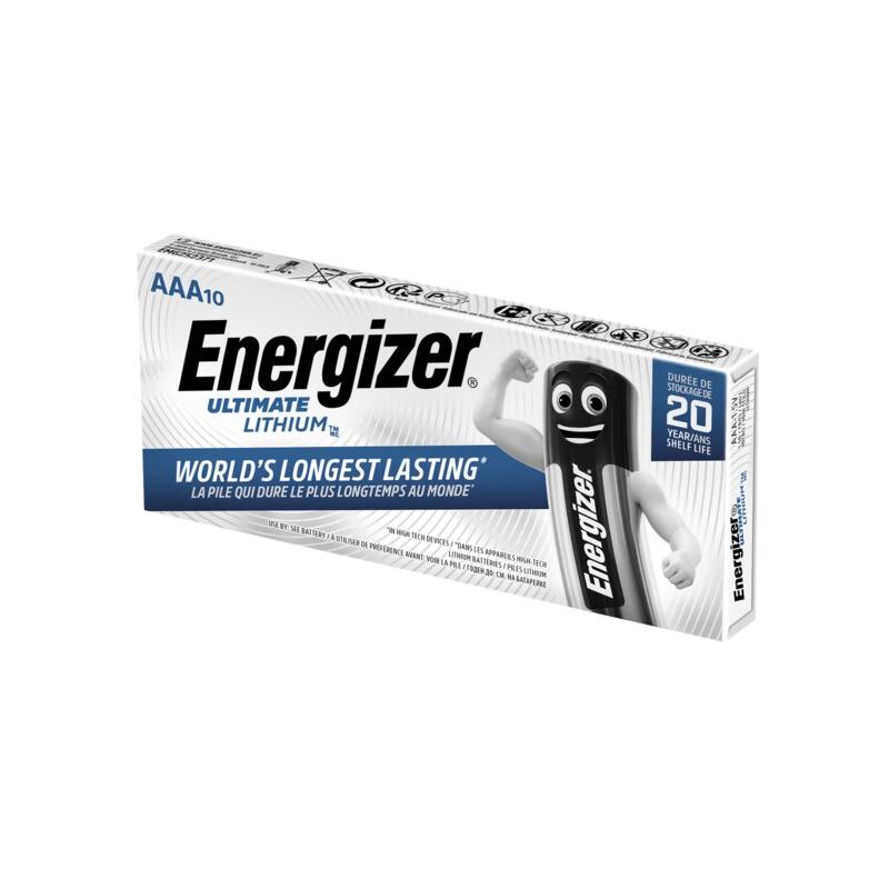 Die Energizer Ultimate Lithium LR03/AAA-Batterien sind Hochleistungsbatterien für Geräte mit hohem Stromverbrauch, wie z. B. Digitalkameras. Diese Batterien bieten die längste Batterielebensdauer der R03/AAA-Batteriekategorie und halten 7 Mal länger als eine normale Alkalibatterie.