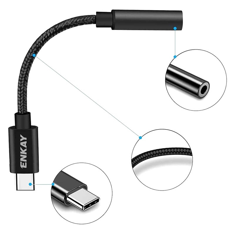 Dieser Enkay-Adapter ermöglicht die Verbindung zwischen einem USB-C-Anschluss und einem 3,5-mm-AUX-Audiokabel. Es bietet eine stabile Übertragung und ermöglicht es Ihnen, Anrufe mit Ihren Kopfhörern anzunehmen.