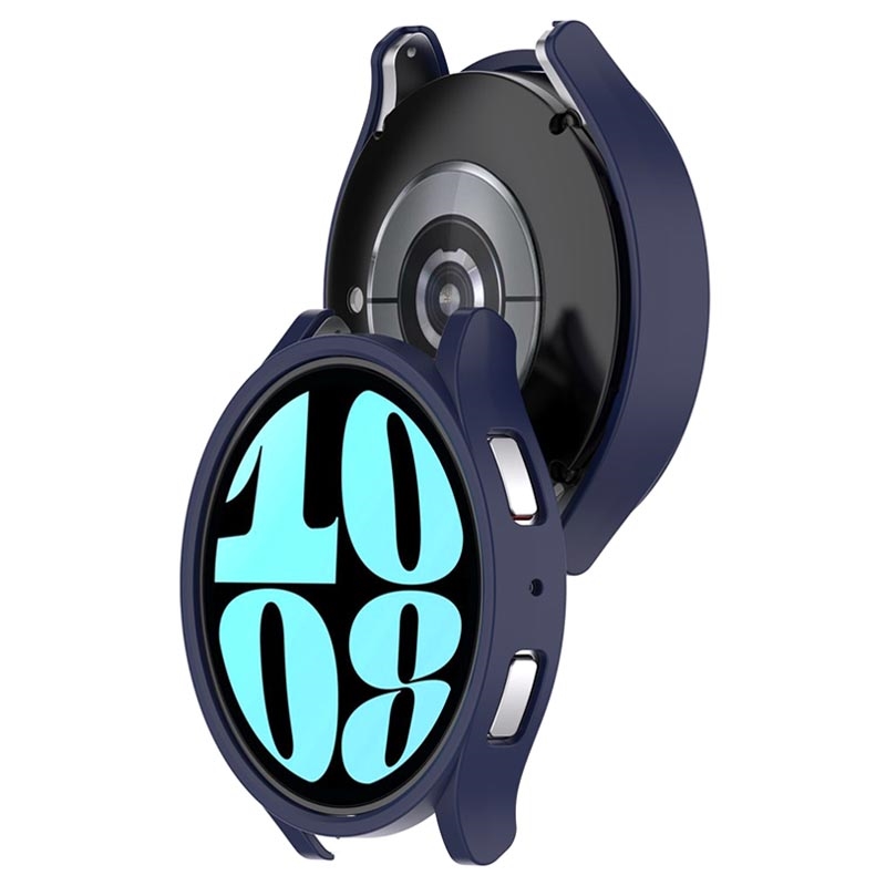 Das 2-in-1-Design besteht aus einem hochwertigen Polycarbonat-Gehäuse und einem integrierten 9H-Bildschirmschutz, der Schutz vor Staub, Schmutz, Beschädigungen und Kratzern bietet. Es ist schlank und leicht, so dass es kaum ins Gewicht fällt, während der galvanisierte Rahmen wie Metall glänzt. Gehärtetes Glas beeinträchtigt die Empfindlichkeit des Bildschirms nicht, und ein präzise geformtes Gehäuse mit Aussparungen bewahrt die Funktionalität der Samsung Galaxy Watch6.
