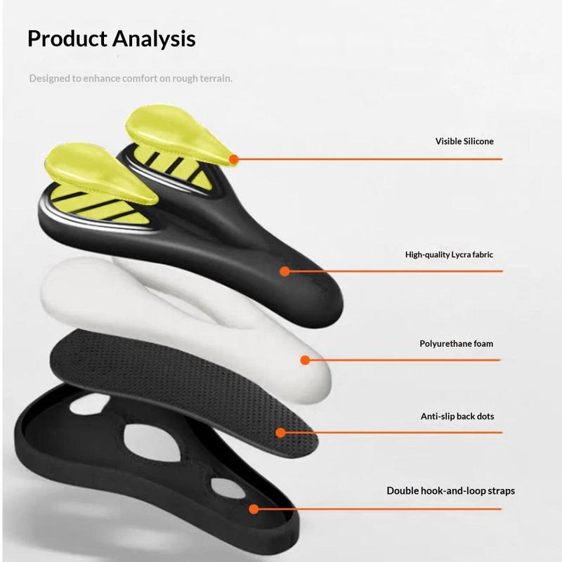 • Enlee EN-330 Wasserabweisender Fahrradsattelbezug mit Silikonpolsterung - Universelles Anti-Schmerz-Sattelkissen für Rennräder, Mountainbikes und Gravelbikes