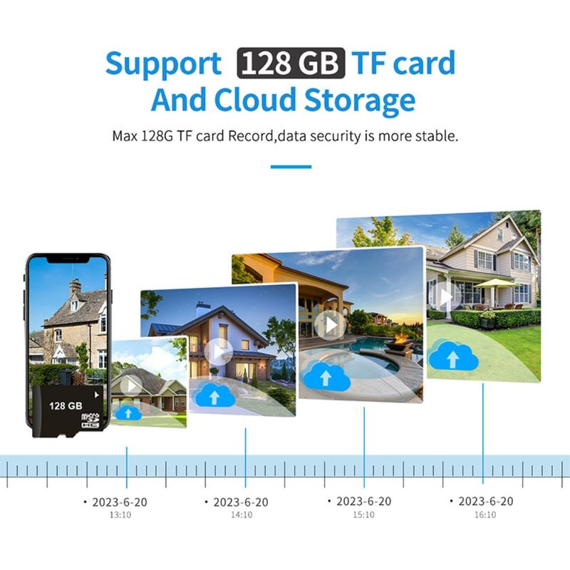 - Sichern Sie Ihr Ferienhaus; der lokale TF-Speicher zeichnet rund um die Uhr ohne Cloud-Gebühren auf, OTA-Updates fügen Funktionen aus der Ferne hinzu.